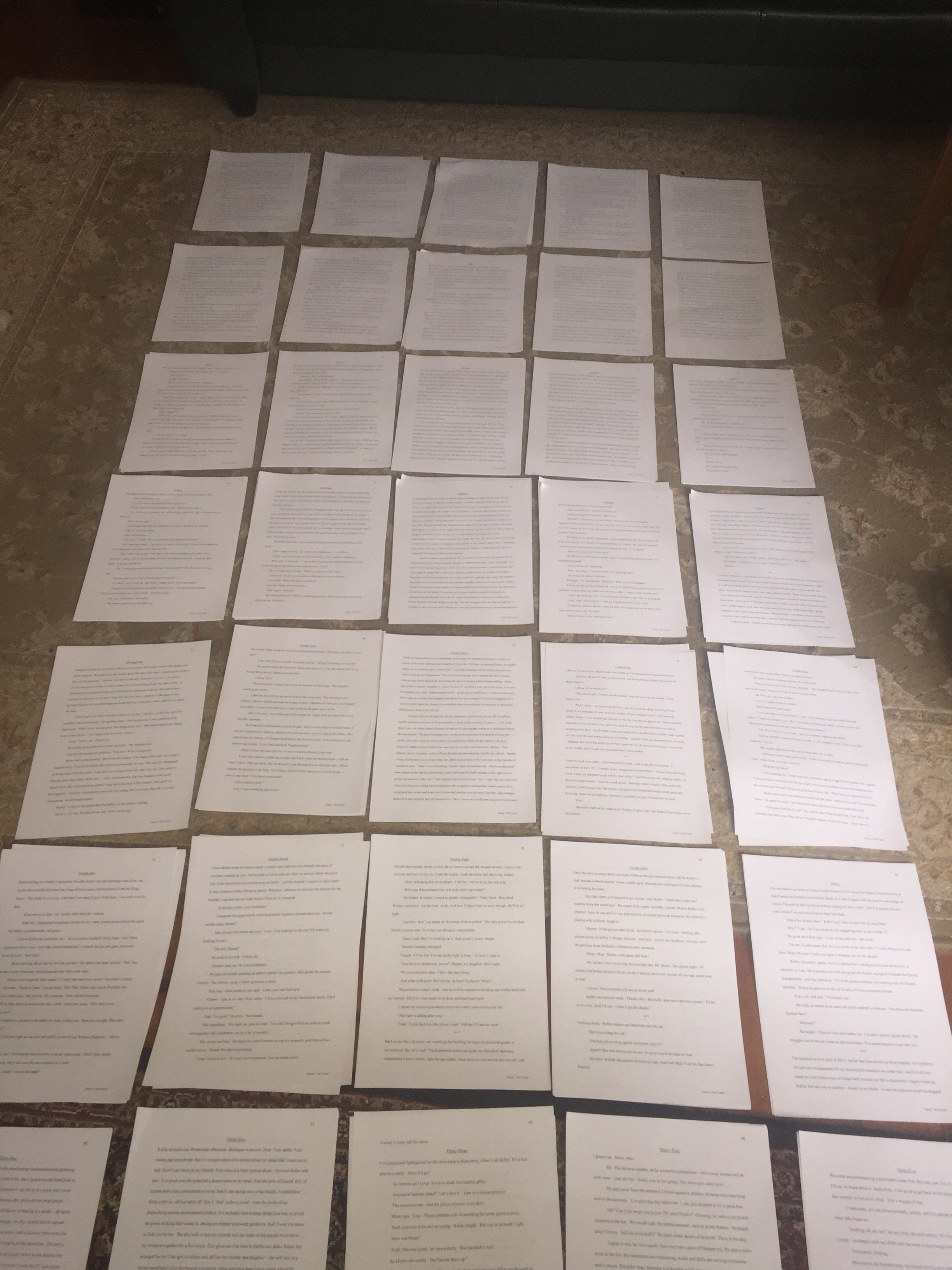 These pages are a literal chapter breakdown of my manuscript-in-progress called Burned. I’ve written fragments of a backstory for my protagonist and now I need to figure out where to slip them into the manuscript so the plot continues to unroll naturally and the reader can gain some insight (drop by drop – not massive info-dump) into the character without losing the momentum of the story. T’is a challenge . . .