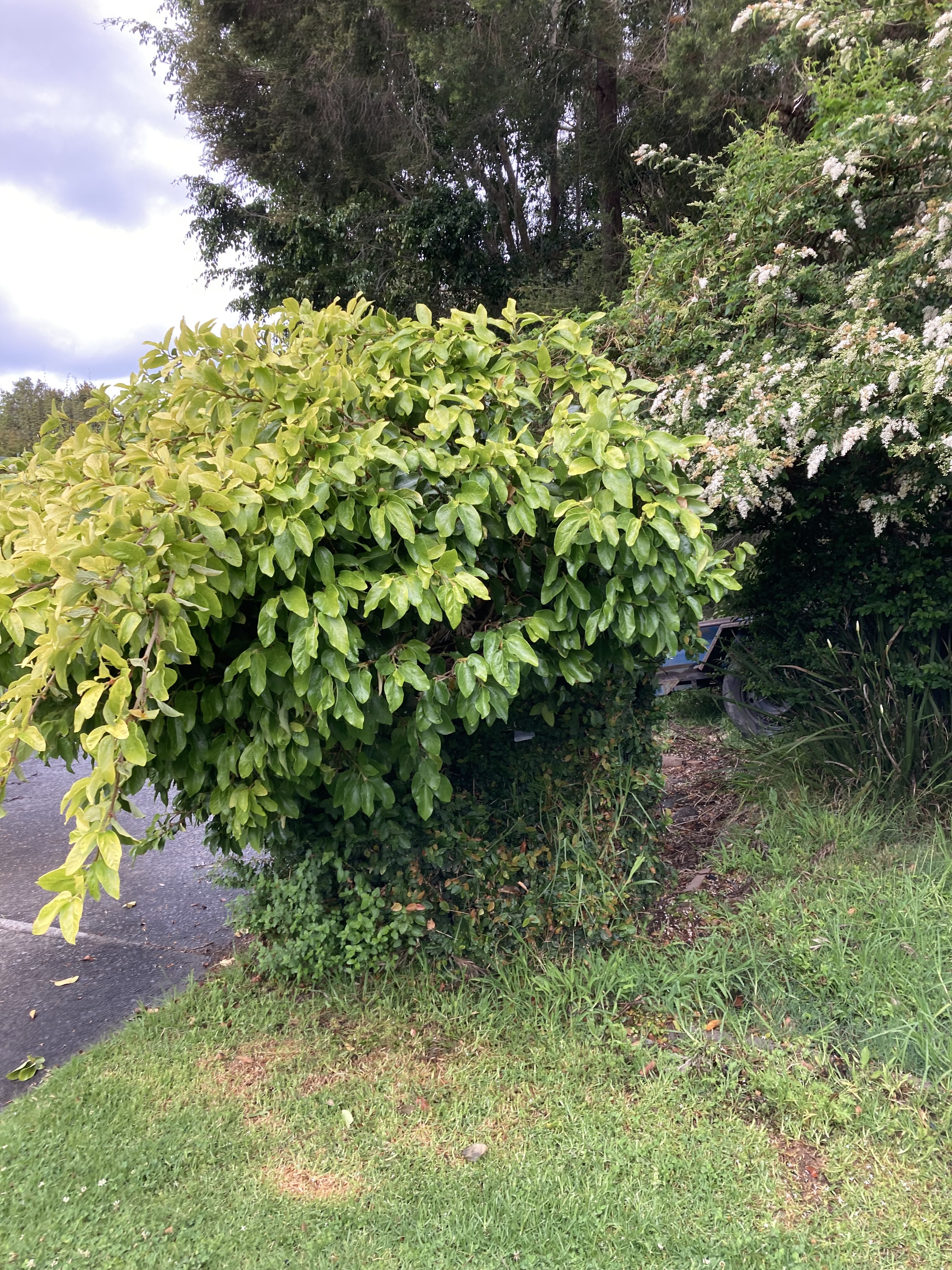 Somewhere in that green Cousin It look-a-like vegetative monstrosity is a letterbox!